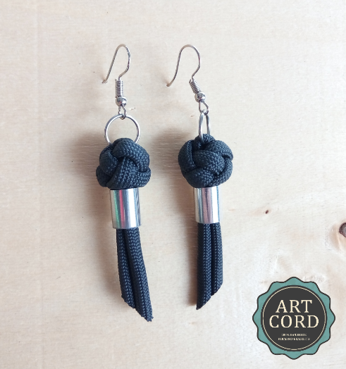 Brincos feitos à mão em paracord 550 com bead em aluminio polido.