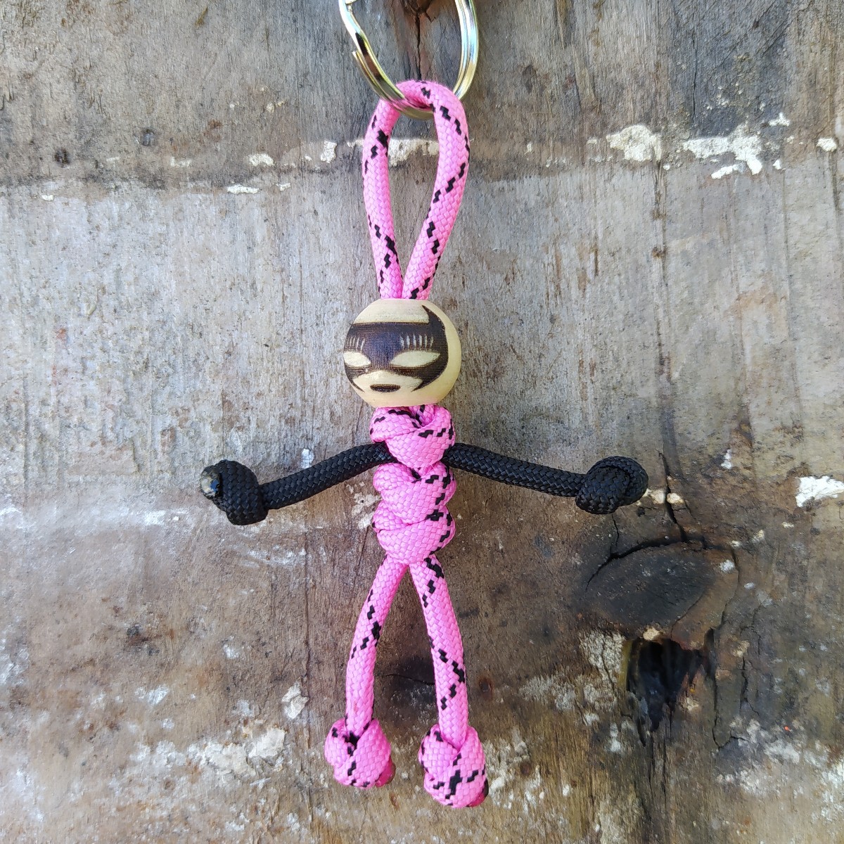Boneco realizado à mão em paracord 550 e cabeça de madeira envernizada.