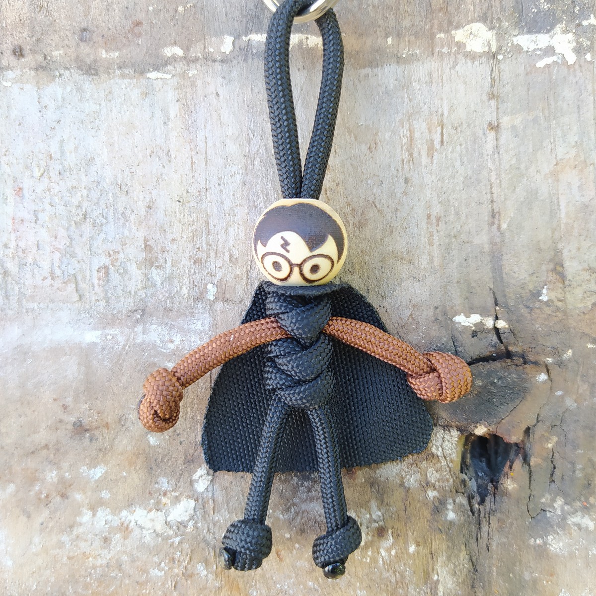 Boneco realizado à mão em paracord 550 e cabeça de madeira envernizada.