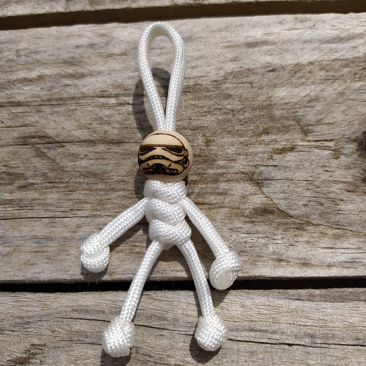 Boneco realizado à mão em paracord 550 e cabeça de madeira envernizada.